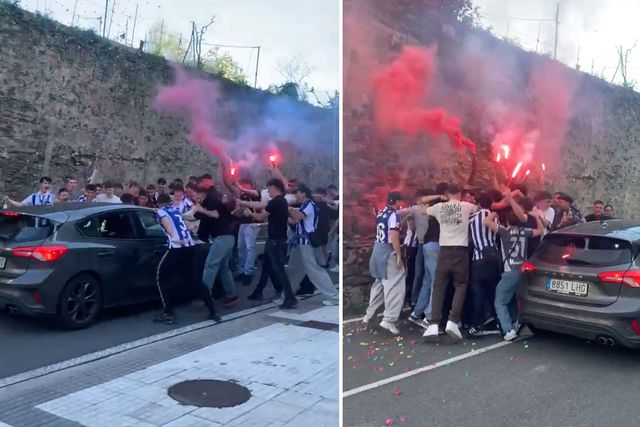 Real Sociedad formasıyla ilk profesyonel maçına çıkan 19 yaşındaki Ibai Aguirre, mahallesine döndüğünde arkadaşları tarafından kahraman gibi karşılandı.