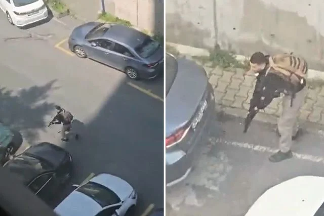 İstanbul'da Beşiktaş'ta İsrail Konsolosluğu'nun da bulunduğu binanın önünde silahlı çatışma çıktı. 2 polisimizin yaralandığı olayda saldırganların konsolosluk önüne geldikleri anların görüntüsü ortaya çıktı.