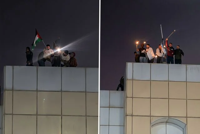 Sosyal medyaya yansıyan görüntülerde, kalabalığın bayrağın indirilmesi sırasında tekbir getirdiği ve sevinç gösterilerinde bulunduğu görüldü.