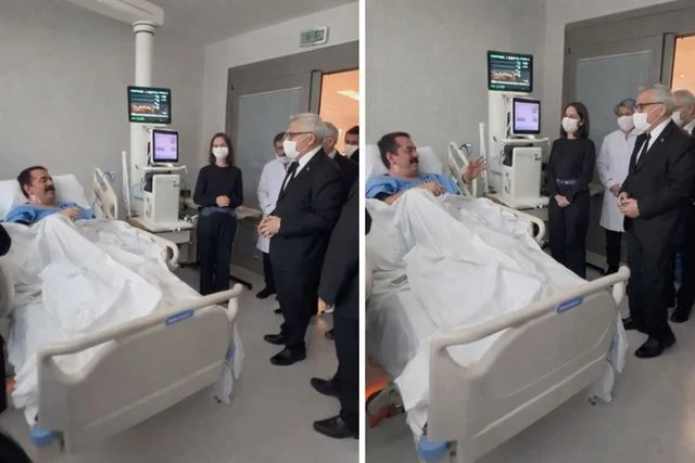 Yüksek ateş ve halsizlik şikayetiyle hastanede tedavi altına alınan İbrahim Tatlıses’i ziyaret eden AK Parti heyeti, beklenmedik bir sürprizle karşılaştı. Sanatçı, kendisini ziyarete gelen Genel Başkan Yardımcısı Hüseyin Yayman ve beraberindeki heyeti türkü söyleyerek karşılarken, hem moralinin yüksek olduğunu gösterdi hem de sağlık durumuna ilişkin olumlu bir tablo ortaya koydu.