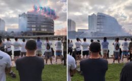 İşte Hark Adası’nın vurulduğu anlar! Üst üste tam 15 patlama
