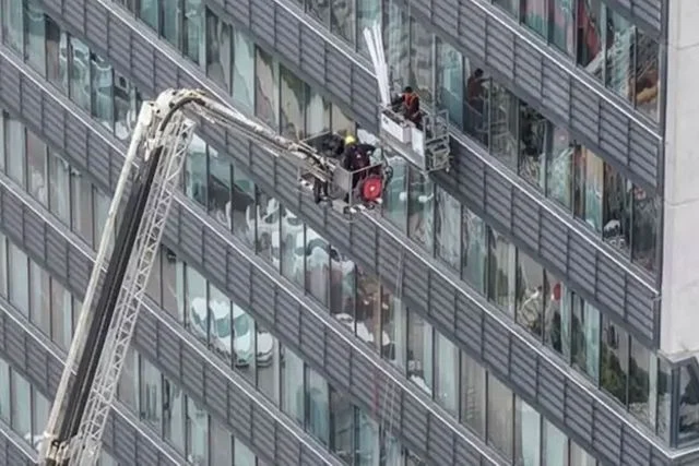 İtfaiye sepetiyle aşağıya indirilen işçilerin sağlık durumunun iyi olduğu belirtildi. Polis ekipleri olayla ilgili soruşturma başlattı. Yüzlerce kişi de kurtarma operasyonunu meraklı gözlerle izledi.