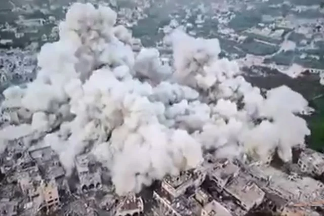 İsrail, Lübnan'ın güneyindeki bir şehirde bulunan mahallenin tümünü havaya uçurdu.