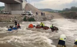 Bursa’da akıntıya kapılarak devrilen traktördeki 10 işçi vinçle kurtarıldı