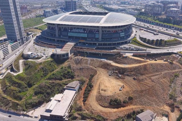 Stadyum çevresinde zemin çalışmaları devam ederken, iş makinalarının çalışmaları havadan görüntülendi. Spor salonları ve kamp tesislerinin temel atma töreni ise 23 Nisan Perşembe günü gerçekleştirilecek.