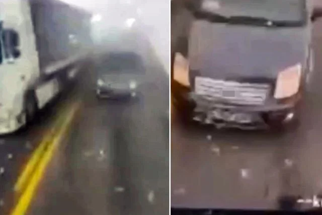 Artvin'in Şavşat ilçesinde hafif ticari araç ile TIR'ın kafa kafaya çarpıştığı kazada, 2 kişi yaralandı. Araç kamerasına yansıyan kazada ticari aracın sisin içinden bir anda çıktığı görüldü.