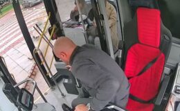 Yere düşen Türk Bayrağı için otobüsü durdurdu