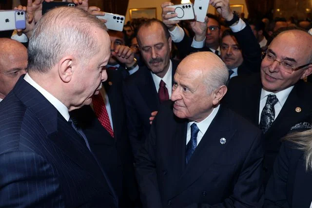 TBMM’de düzenlenen 23 Nisan resepsiyonunda Cumhurbaşkanı Recep Tayyip Erdoğan ile MHP Genel Başkanı Devlet Bahçeli bir araya geldi. İki liderin ayaküstü gerçekleştirdiği samimi sohbette futbol da konuşulurken, ikilinin neşeli tavırları dikkatlerden kaçmadı.