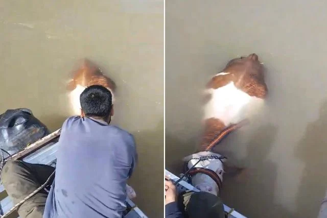 Durumu fark eden çevre sakinleri, bölgede uzun yıllardır balıkçılık yapan Memet Şekerci ve arkadaşlarından yardım istedi. Şekerci ve ekibi, bölgeye özgü “kelek” adı verilen şişme bot ve sallarla adaya ulaştı. Yoğun çaba sonucu tosun güvenli şekilde keleğe bağlanarak kıyıya çıkarıldı.