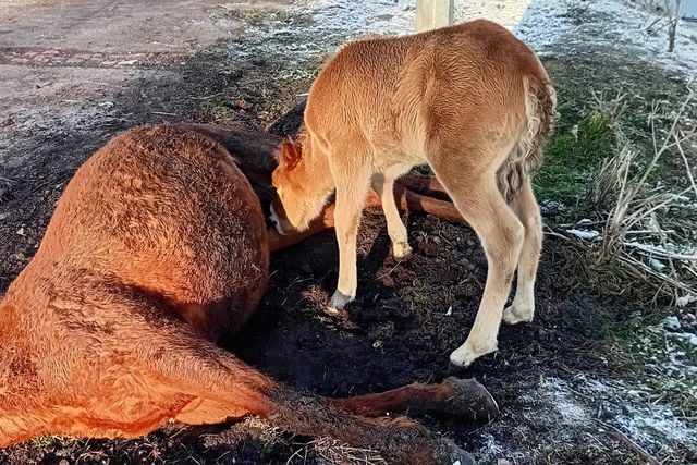 Ardahan'da nehir kıyısında bir tayın, ölen annesinin yanından ayrılmadığı anlar cep telefonuyla kaydedildi.