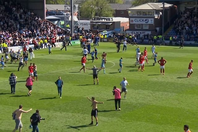 Golün ardından futbolcular oyun alanına dönerken, sahaya giren taraftarlar da tribüne çıktı. Oyunun yeniden başlamasıyla birlikte takım olarak rakip kaleye atak eden York City, yaşanan karambol sonrası skoru dengeleyen golü 90+13'te attı. Bu kez tribünlerde büyük bir sessizlik oluşurken, konuk ekibin oyuncuları ve teknik heyeti sahada şampiyonluk turu attı. Oyunun yeniden başlamasıyla birlikte maç sona ererken, yıllarca unutulmayacak şampiyonluk maçında istediğini alan taraf York City oldu.