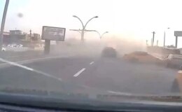 Rüzgarda patlayan camın parçaları başına düştü; o anlar kamerada