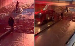 Hatay’da aşırı yağışların etkisiyle, göle dönen yollarda araçlar mahsur kaldı