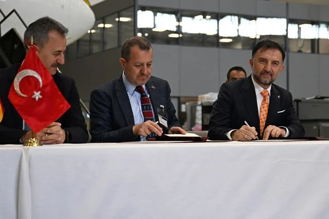 Törene TUSAŞ yetkilileri, İspanya savunma tedarik makamları ve Airbus temsilcileri katıldı. İmzalanan sözleşme kapsamında HÜRJET, İspanya Hava Kuvvetleri'nin eğitim uçağı ihtiyacını karşılamak üzere Avrupa semalarındaki yerini alacak.