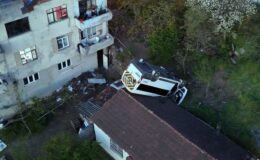 Kağıthane’de okul servisi evin çatısına düştü