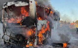 Seyir halindeki tur otobüsü alev topuna döndü