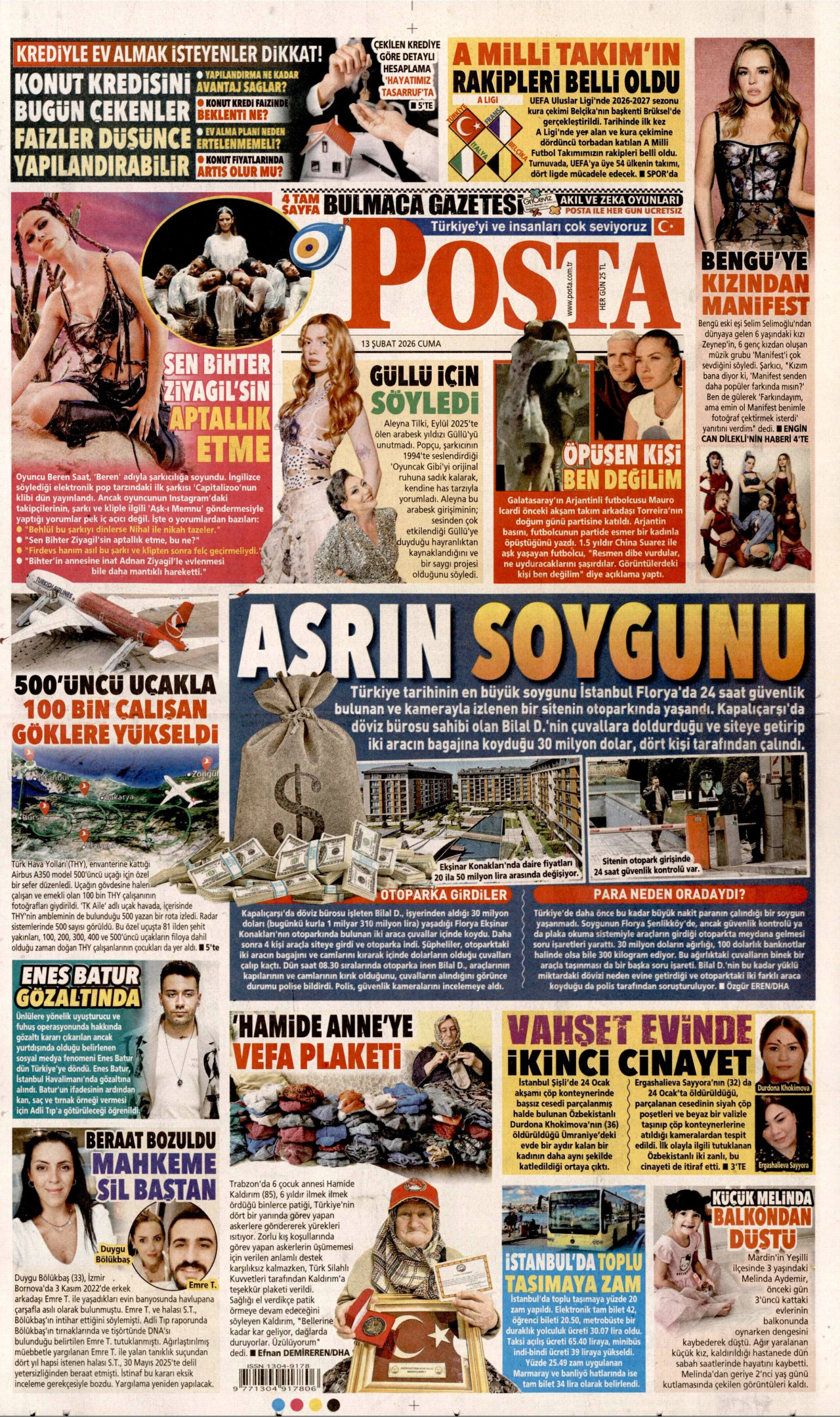 POSTA Gazetesi 13 Şubat 2026, Cuma Günü Manşeti