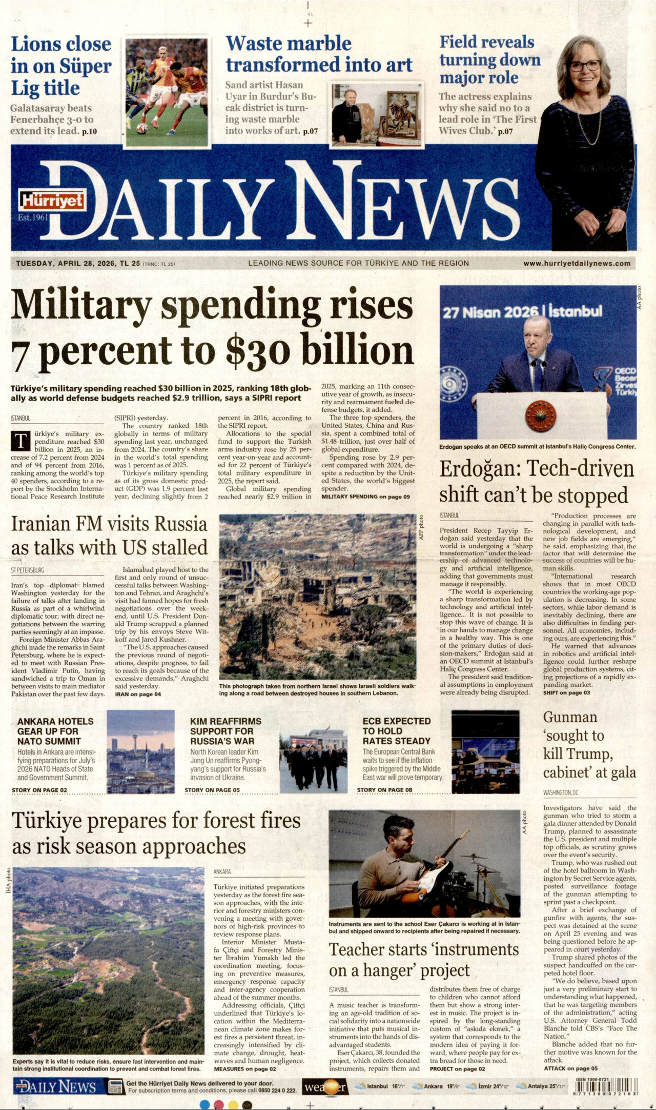 HÜRRİYET DAİLY NEWS Gazetesi 28 Nisan 2026, Salı Günü Manşeti