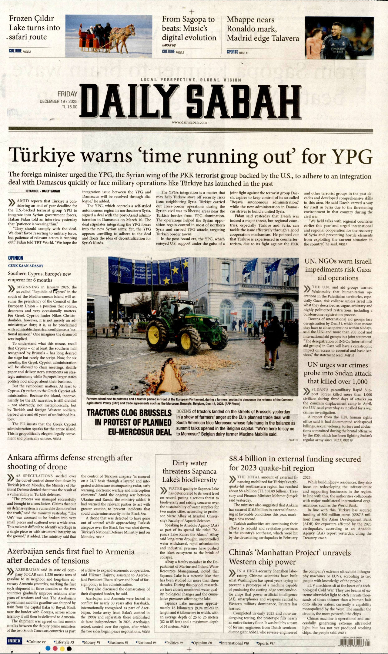 DAİLY SABAH Gazetesi 19 Aralık 2025, Cuma Günü Manşeti