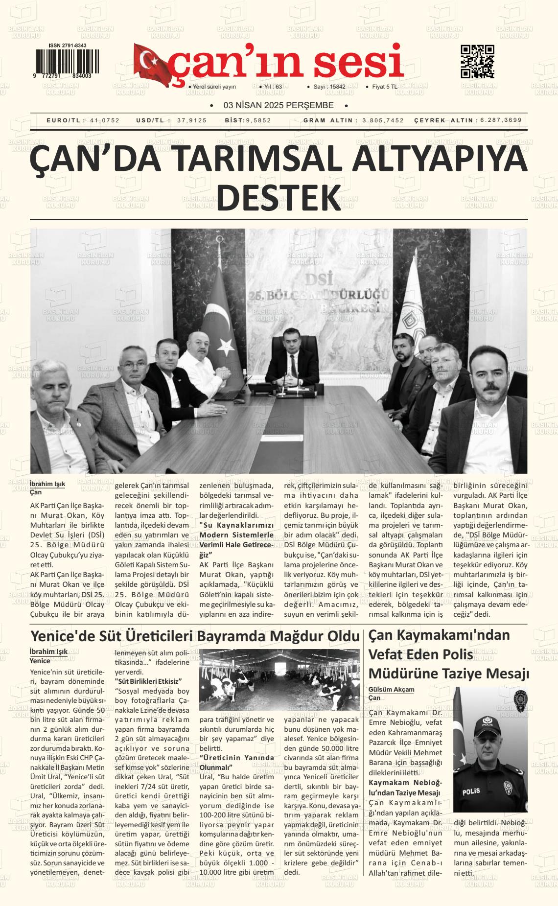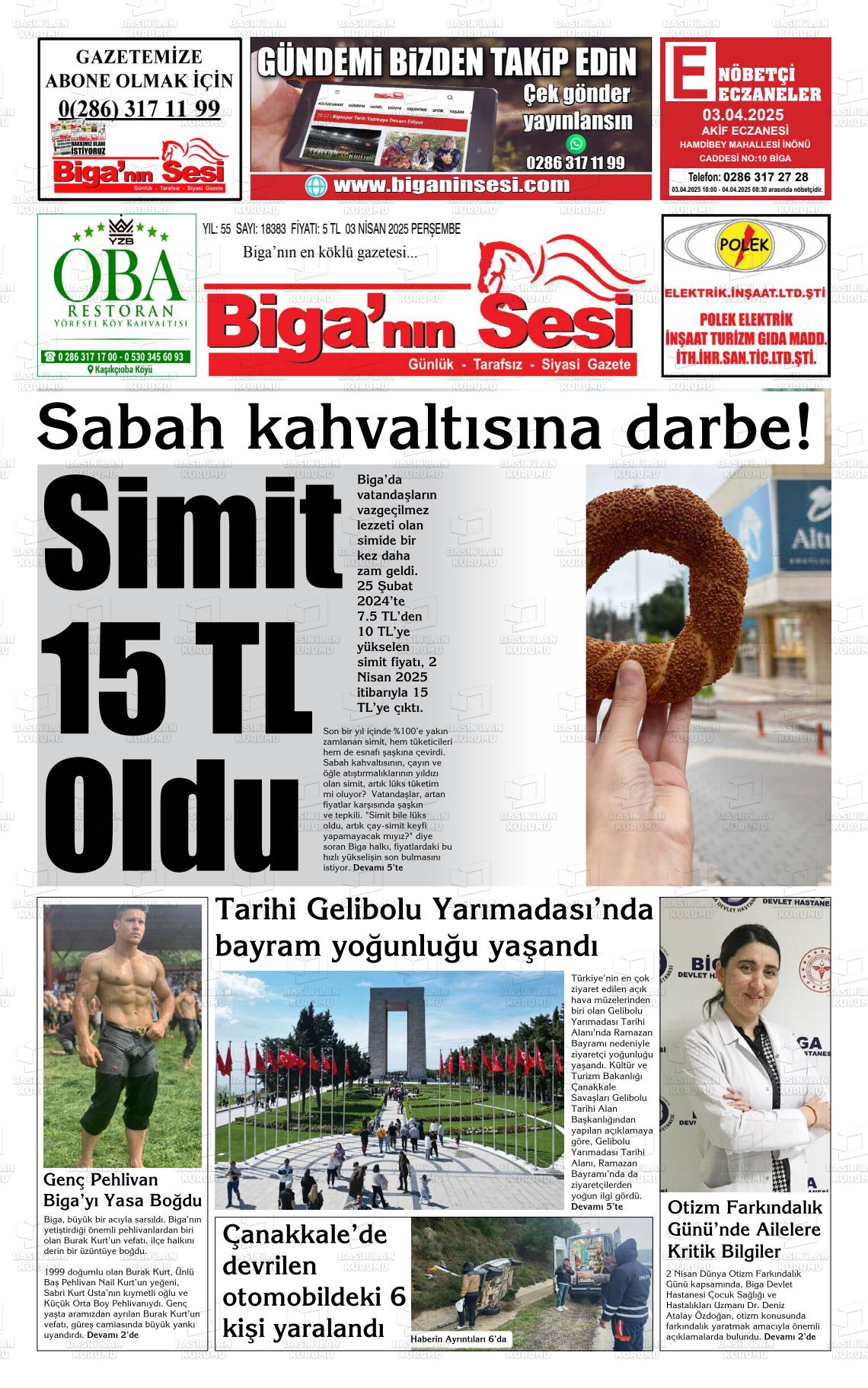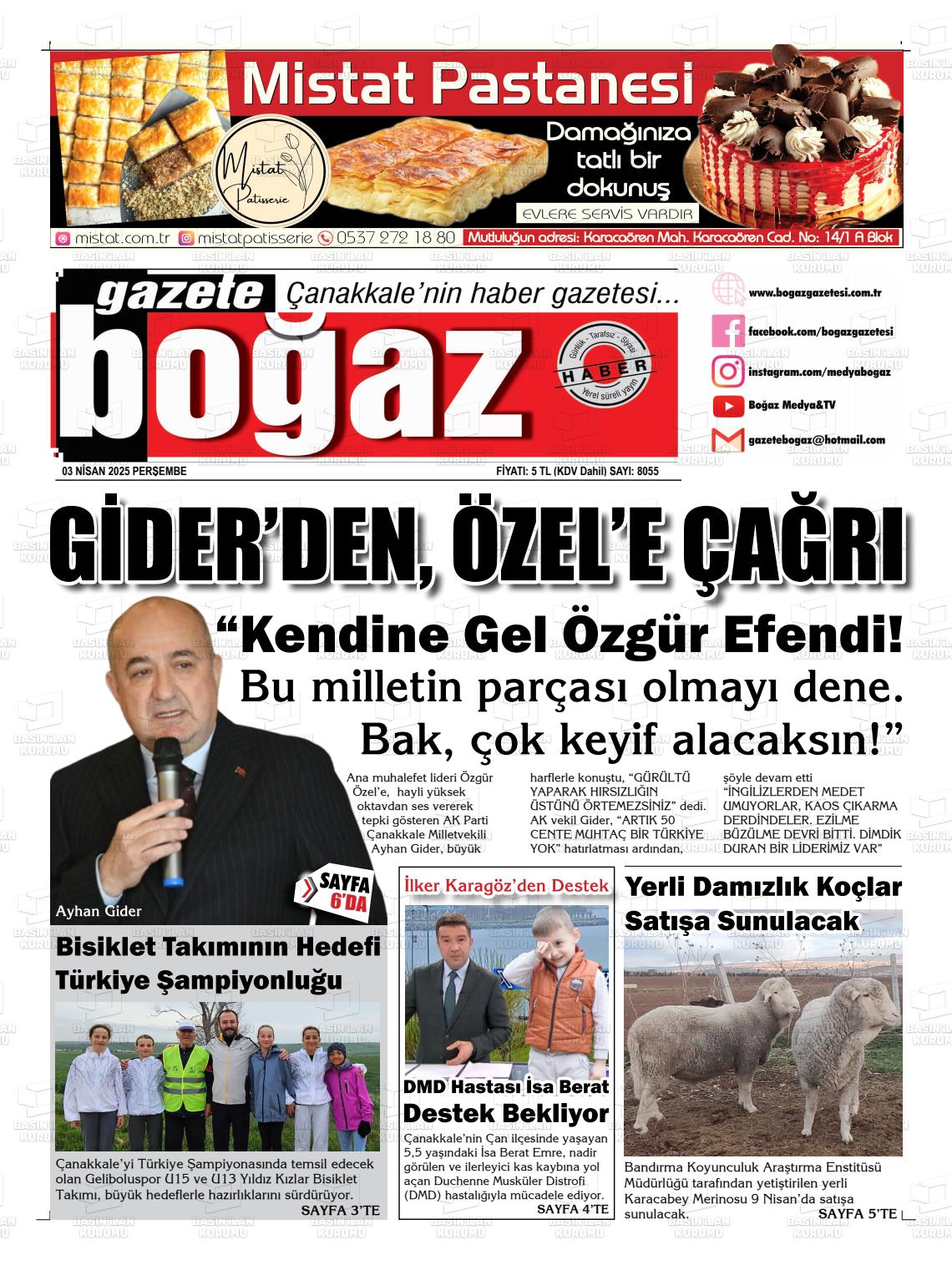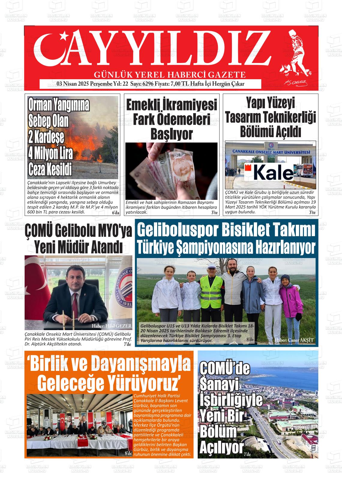 Çanakkale Yerel Gazeteleri 09 Mart 2026, Pazartesi Günü Manşeti