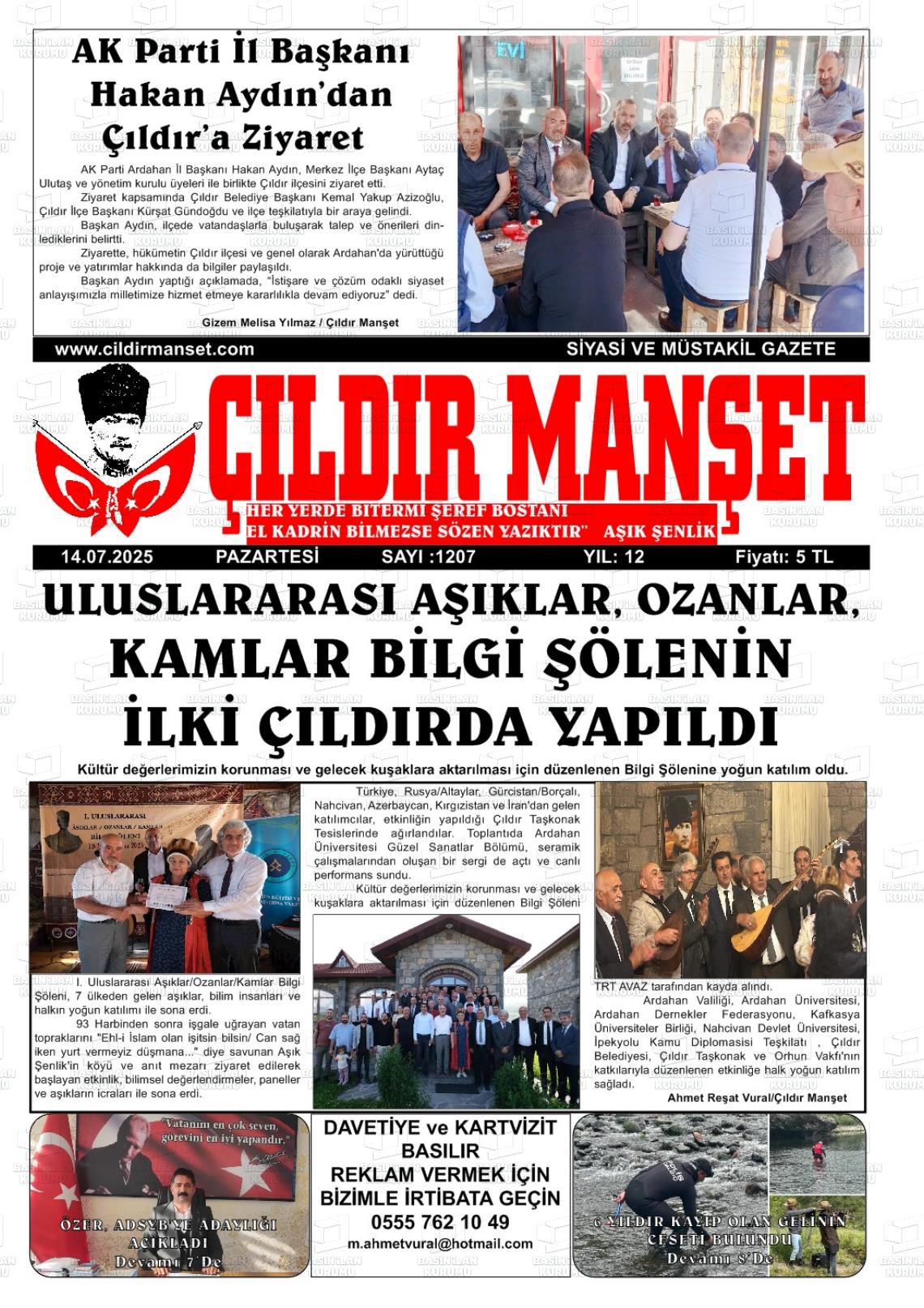 Ardahan Yerel Gazeteleri 25 Ekim 2025, Cumartesi Günü Manşeti