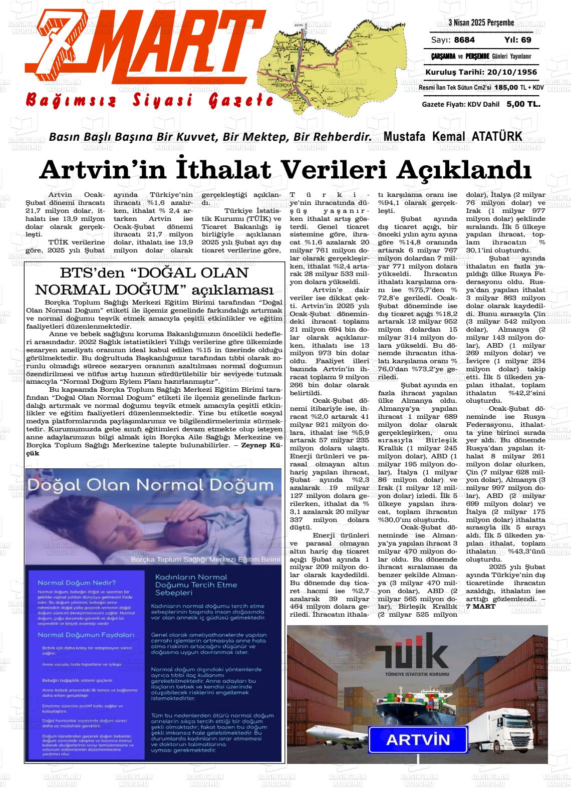 Artvİn Yerel Gazeteleri 21 Ocak 2026, Çarşamba Günü Manşeti