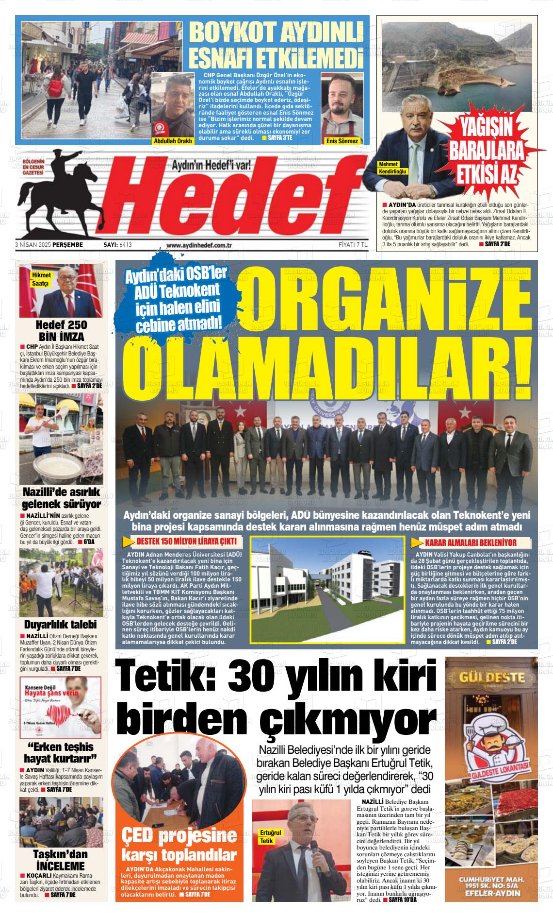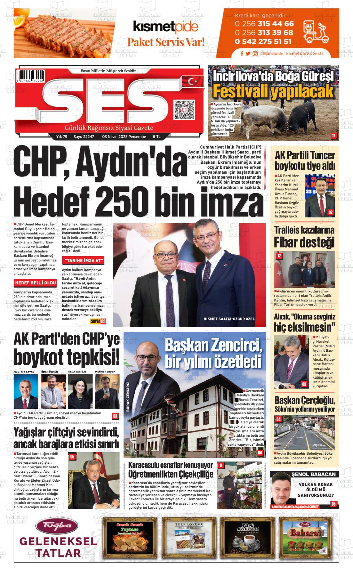 Aydın Yerel Gazeteleri 09 Mart 2026, Pazartesi Günü Manşeti