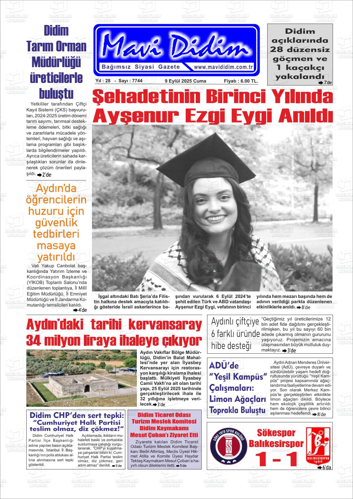 Aydın Yerel Gazeteleri 25 Ekim 2025, Cumartesi Günü Manşeti