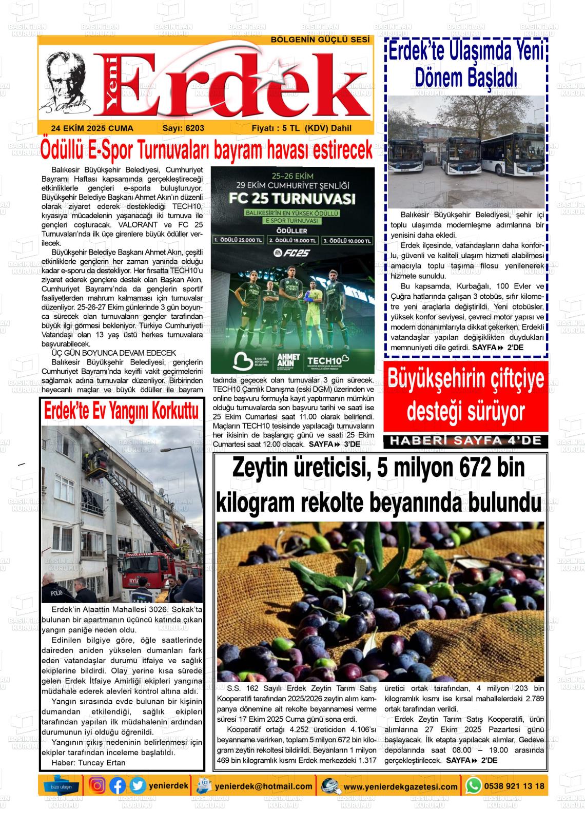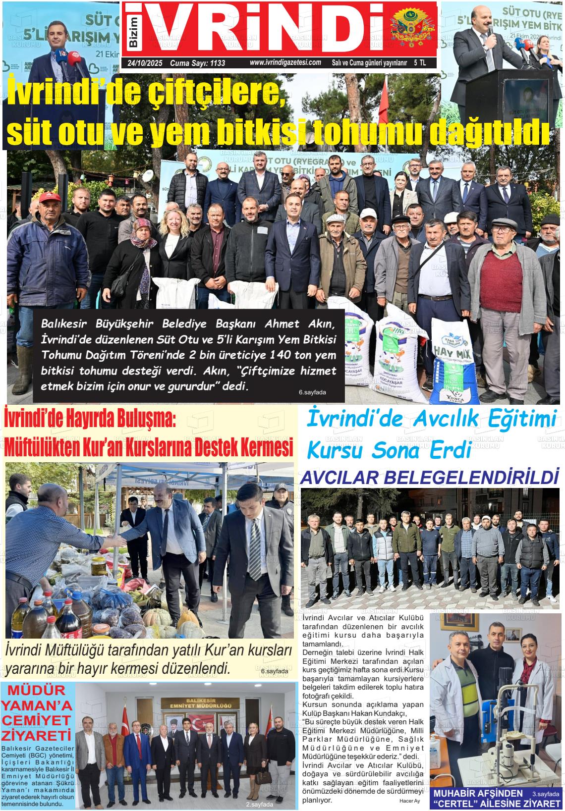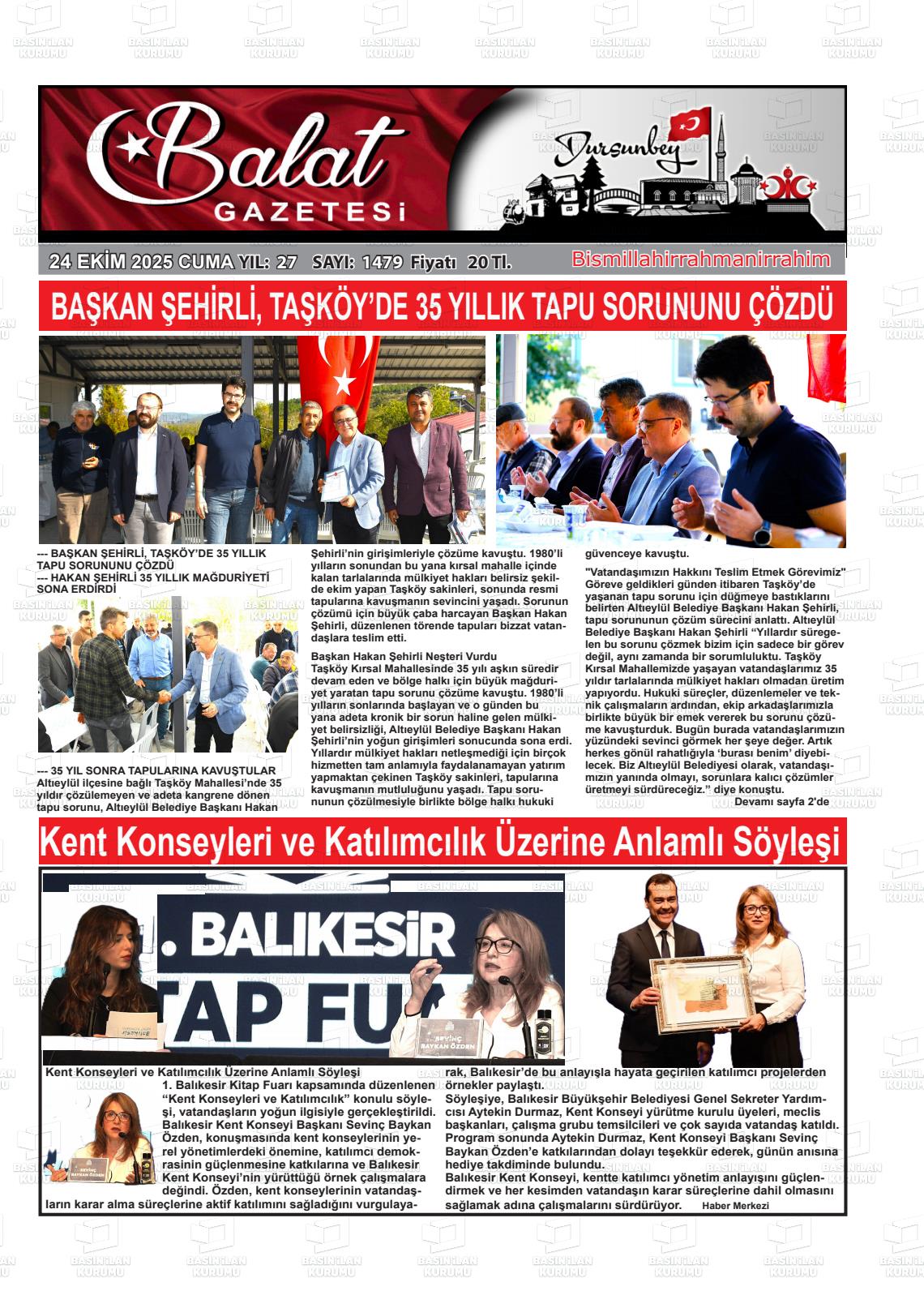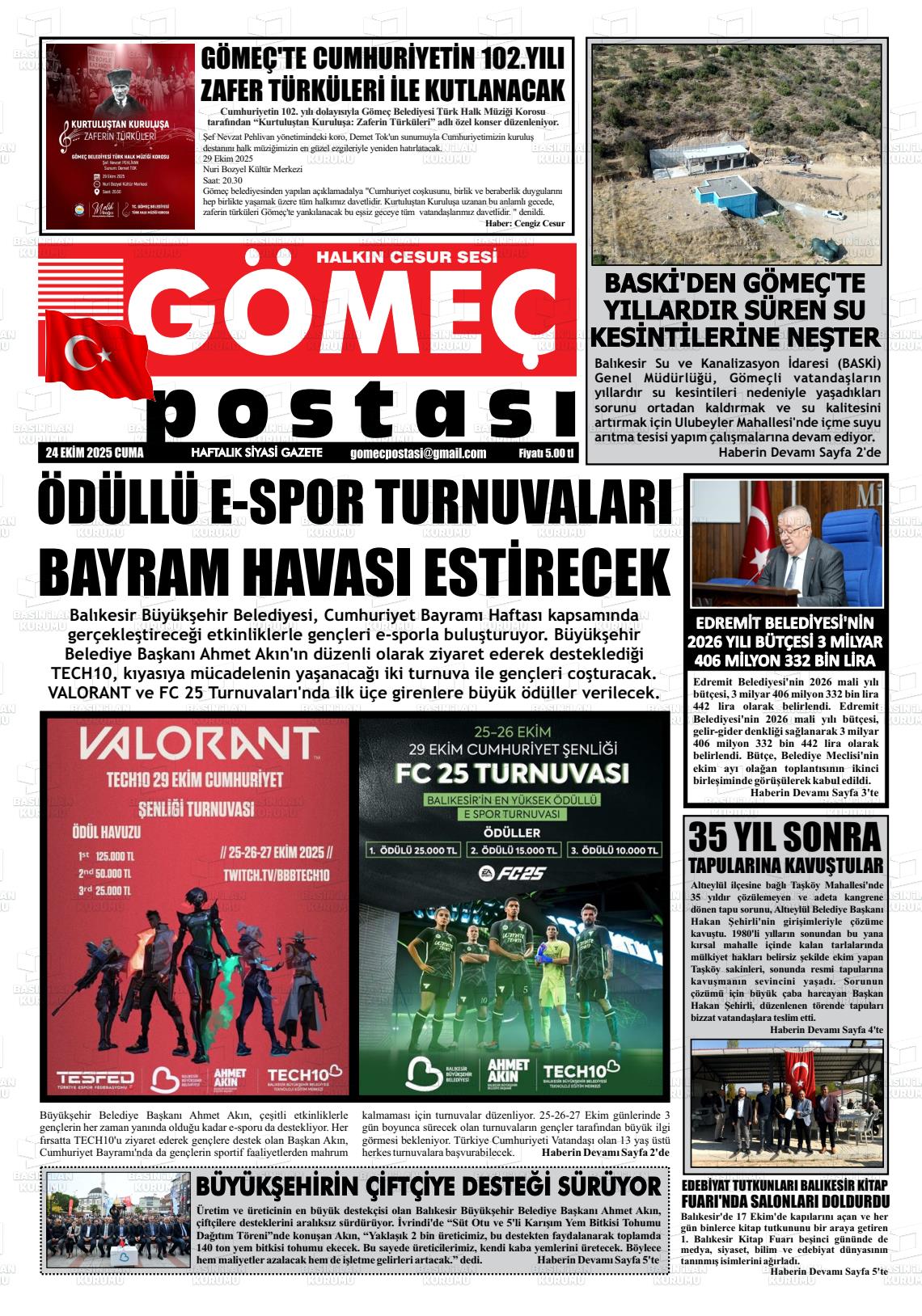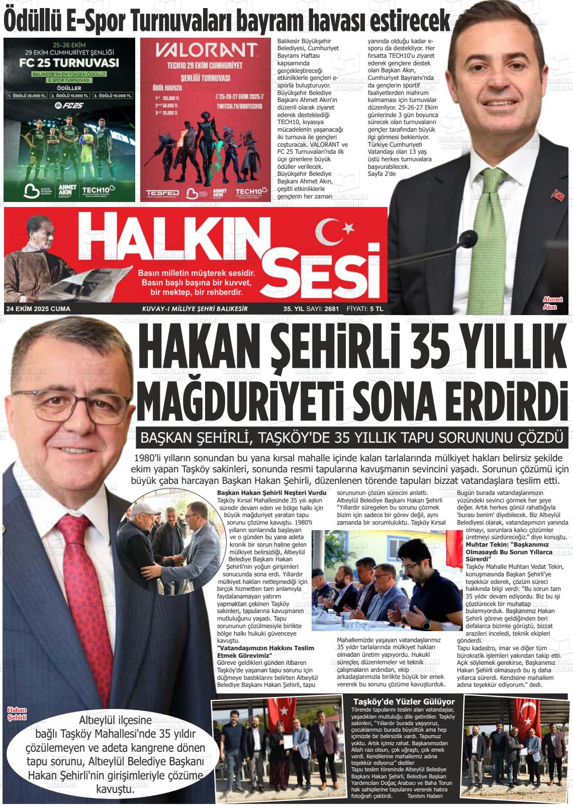 Balıkesİr Yerel Gazeteleri 24 Ekim 2025, Cuma Günü Manşeti