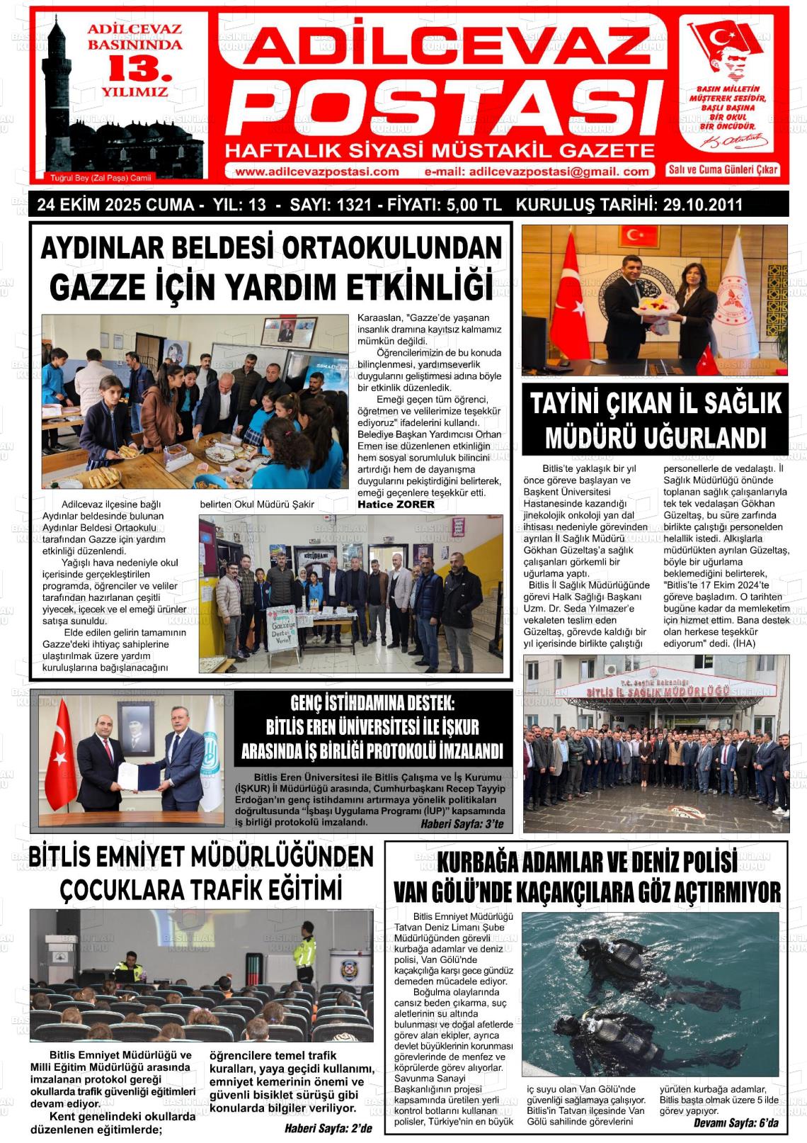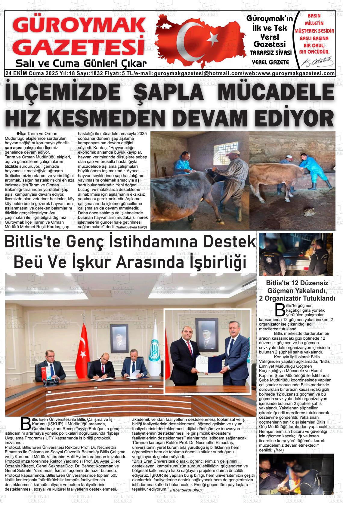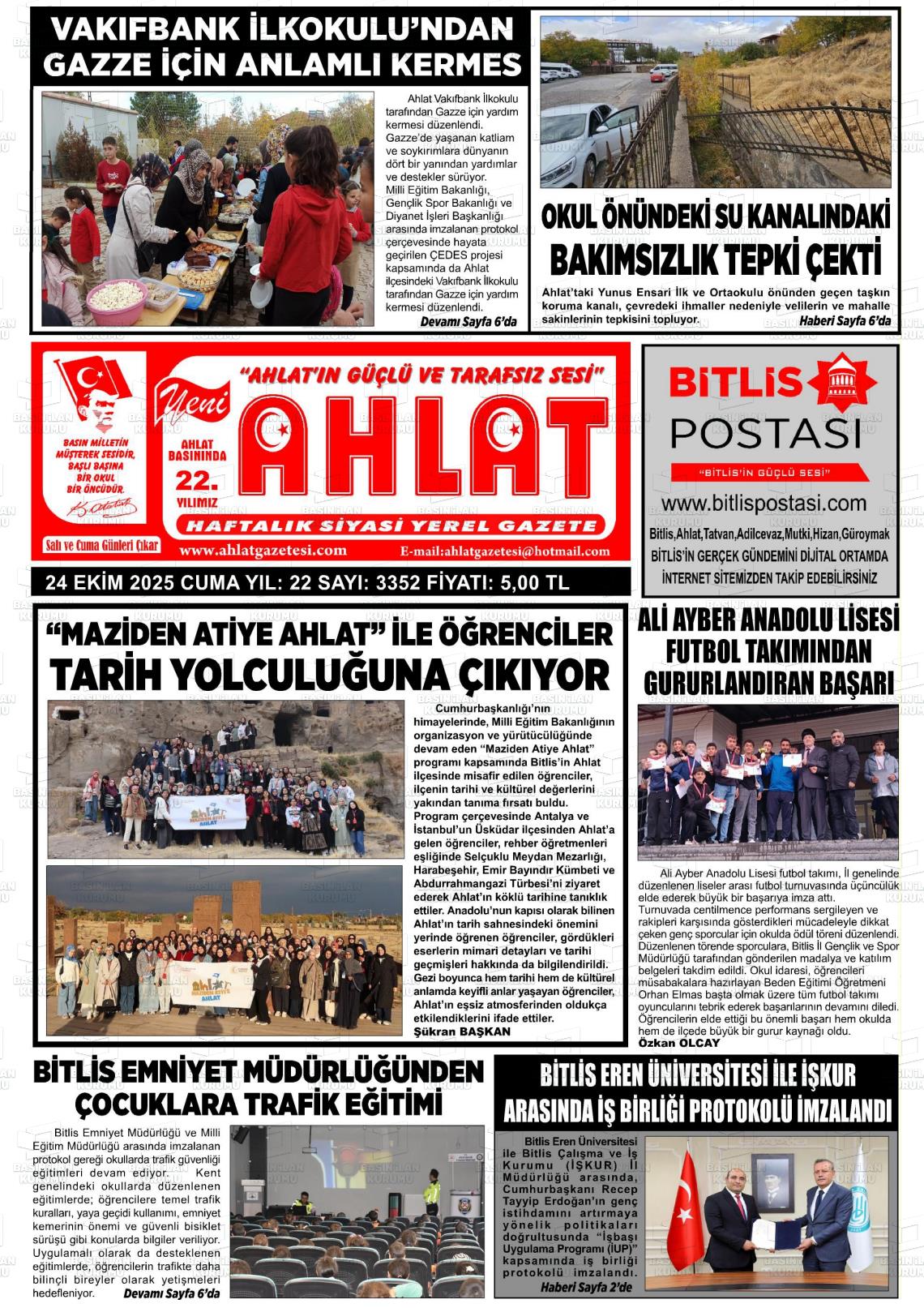 Bİtlİs Yerel Gazeteleri 25 Ekim 2025, Cumartesi Günü Manşeti