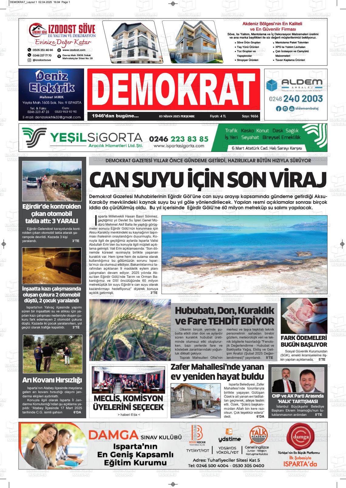 Isparta Yerel Gazeteleri 05 Mart 2026, Perşembe Günü Manşeti