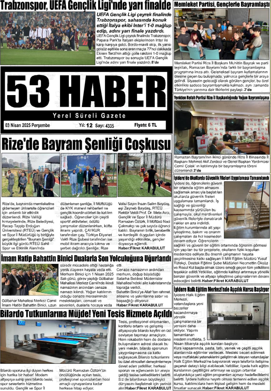 Rİze Yerel Gazeteleri 21 Ocak 2026, Çarşamba Günü Manşeti