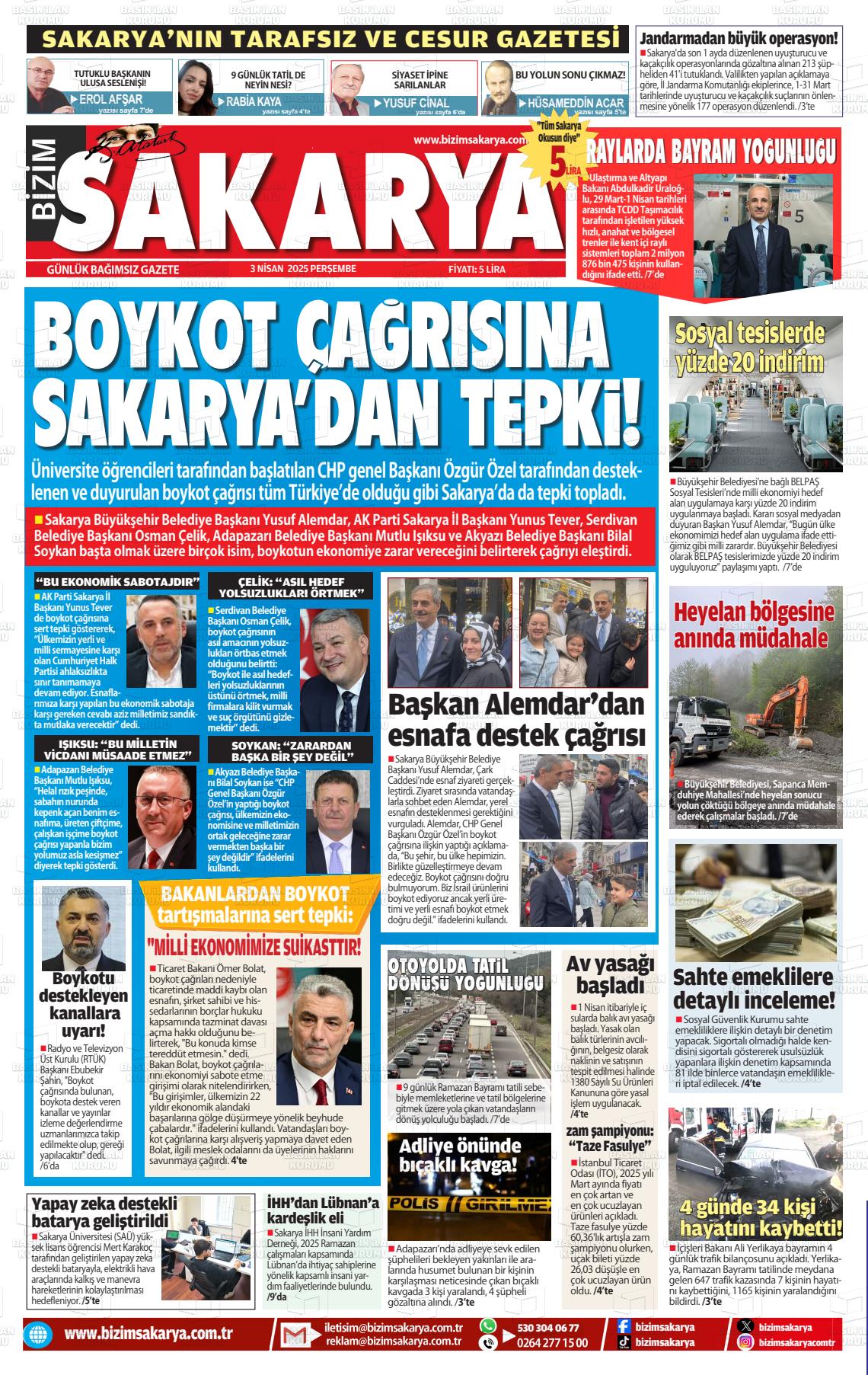 Sakarya Yerel Gazeteleri 20 Aralık 2025, Cumartesi Günü Manşeti