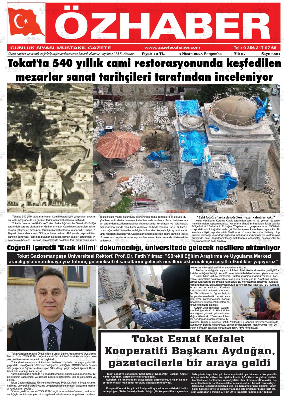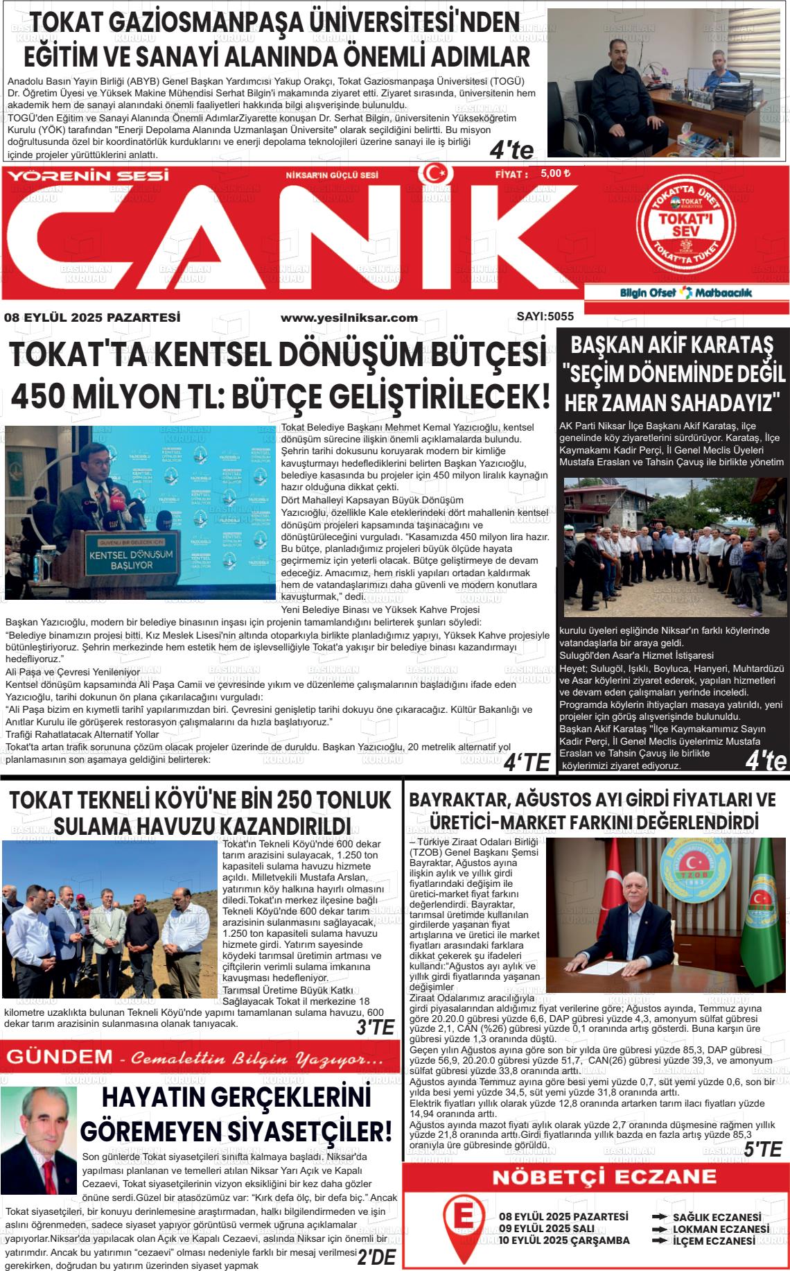 Tokat Yerel Gazeteleri 09 Mart 2026, Pazartesi Günü Manşeti
